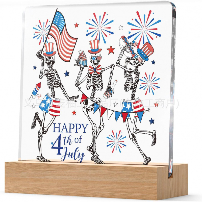 国境を越えた新製品 7 月 4 日独立記念日愛国的な透明な正方形の木製スタンド付きデスクトップ装飾装飾品