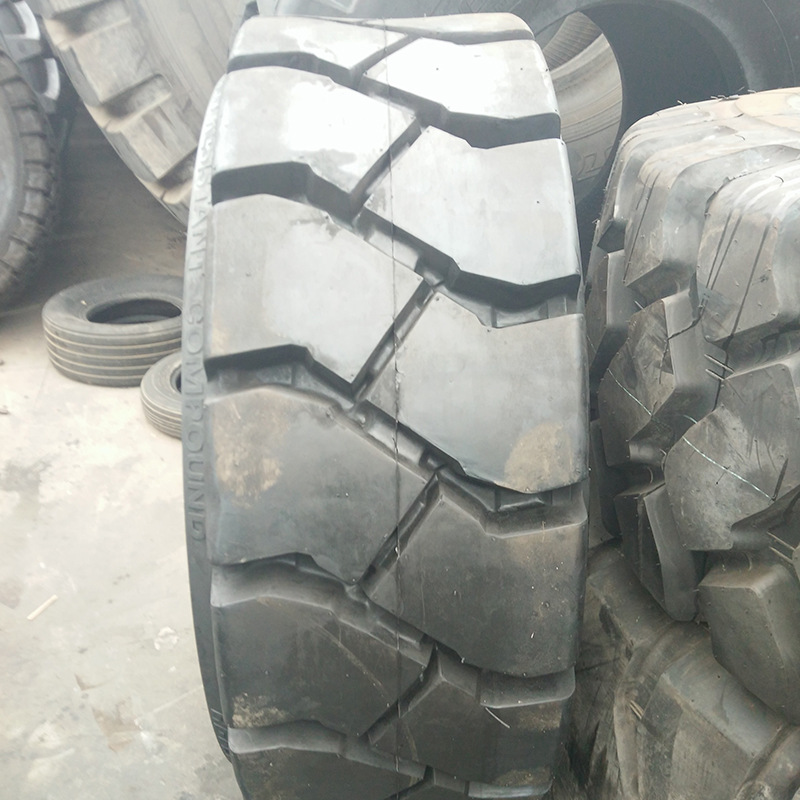 650-10フォークリフトタイヤ2枚の模様が力を合わせて杭叉工業後輪フォークリフトタイヤ