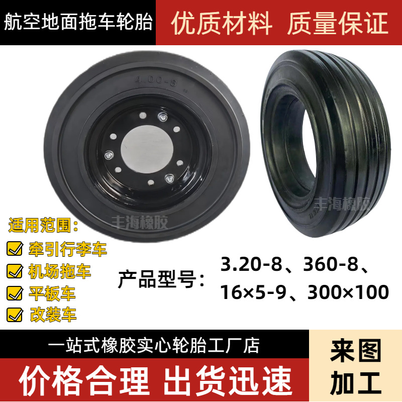 航空地上空港設備ストライプタイヤアセンブリー5.0-8静音輪フォークリフト平面ソリッドタイヤ