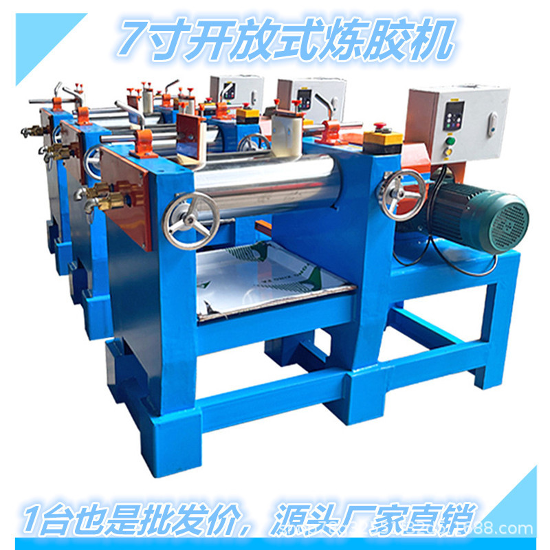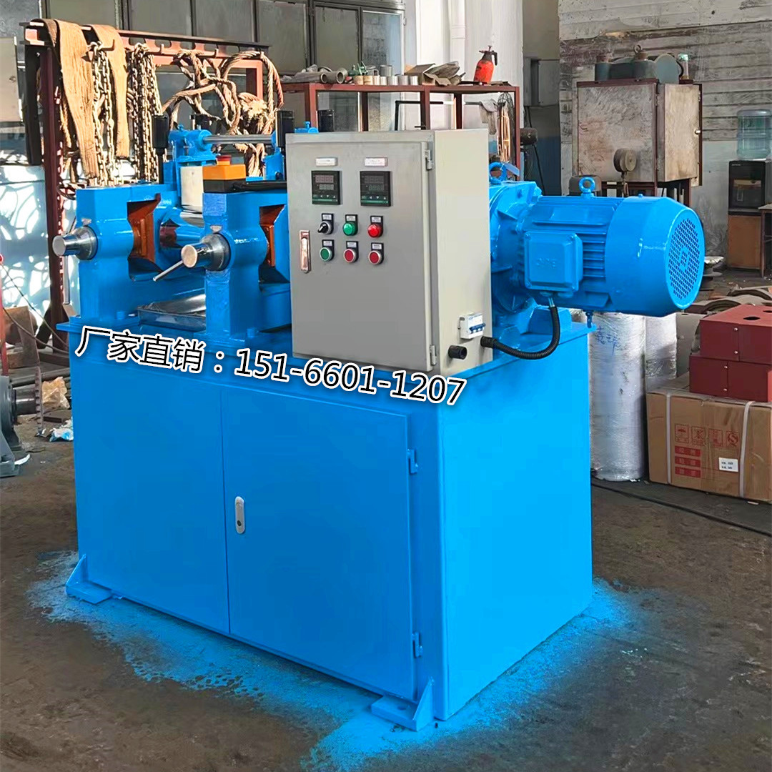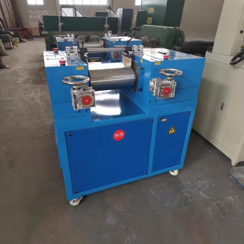 元工場で7インチ双ロール混練機を製造して小型の練習機を混合して一回に10キロの混練機を投入します。