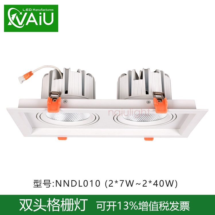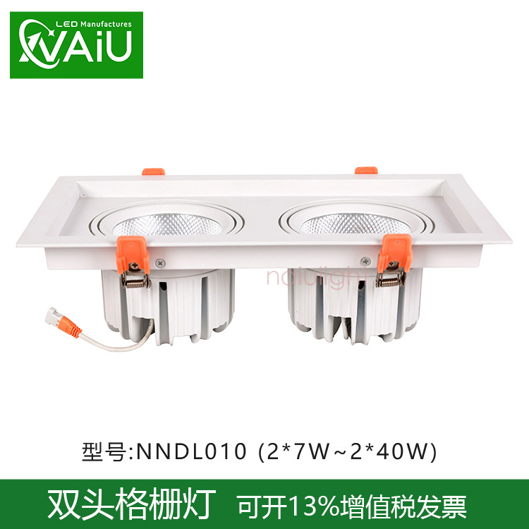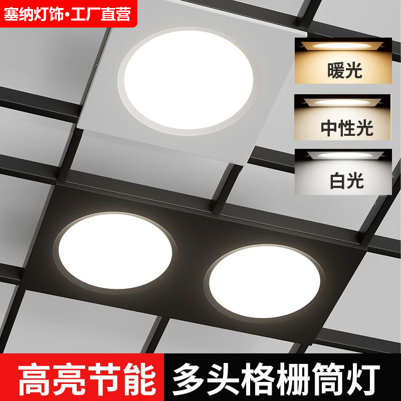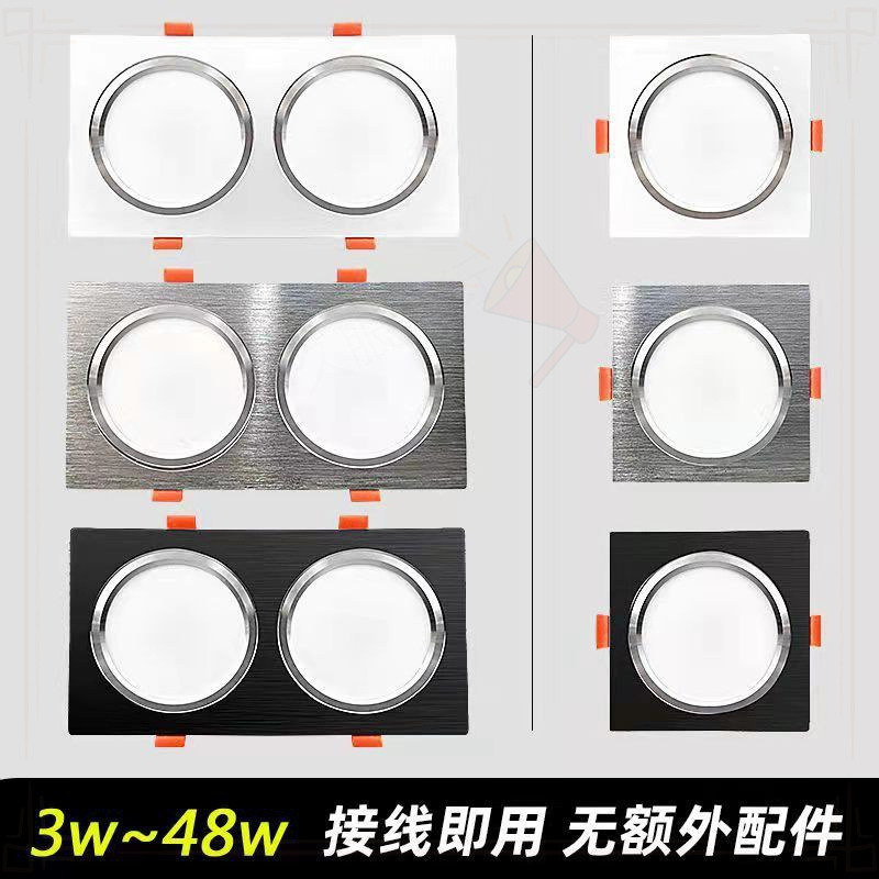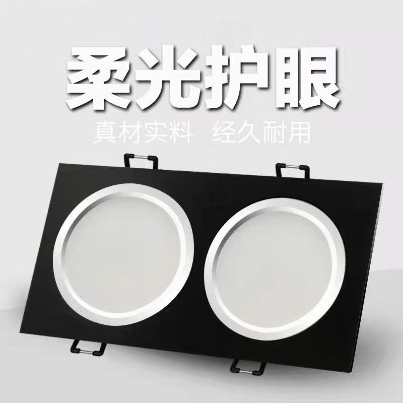 LEDグリルライト変光格子家庭用ダブルヘッドダウンライトグリルライト吊り天井三頭長方形斗胆埋め込み式