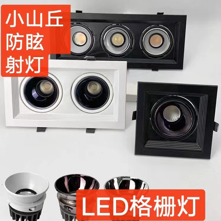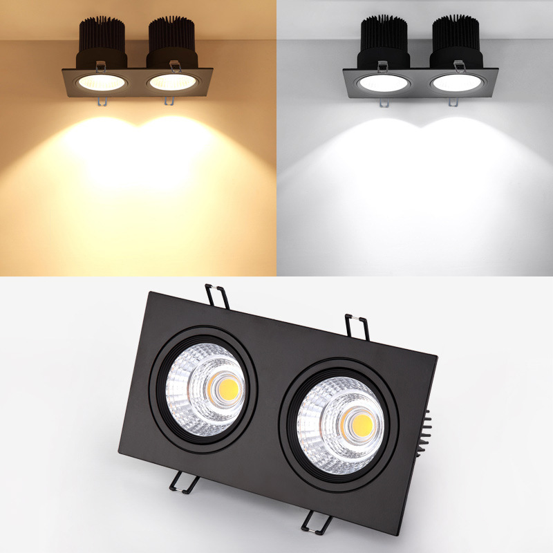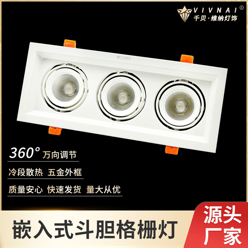 コブグリル天井灯スポットライト出口LED斗胆灯埋め込み式冷白双頭暖白三頭角型アルミ