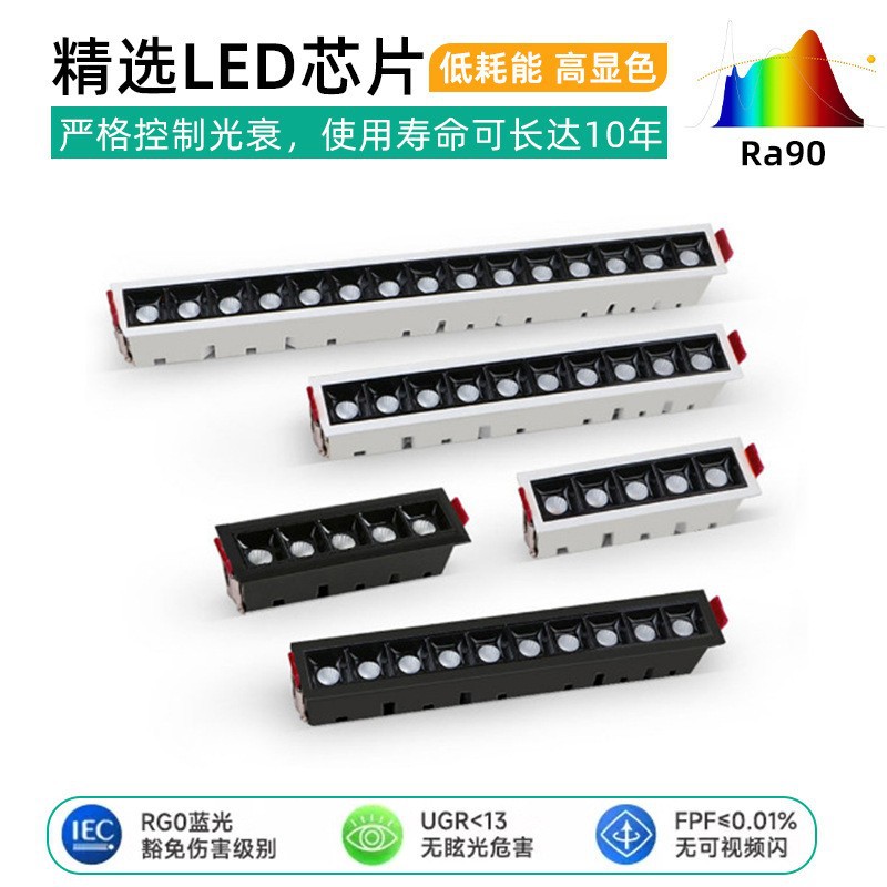 縁なし埋め込み式ラインスポットライトled商超長条集光グリルランプ防眩度リビング無主灯照明