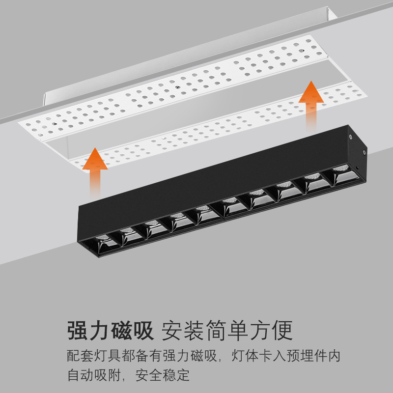 無枠埋め込み型グリルランプ家庭用LED防眩度高顕磁気吸引ラインランプ通路長条ランプ