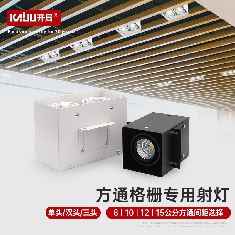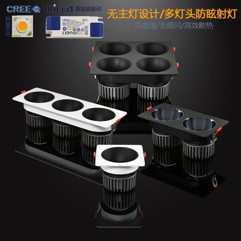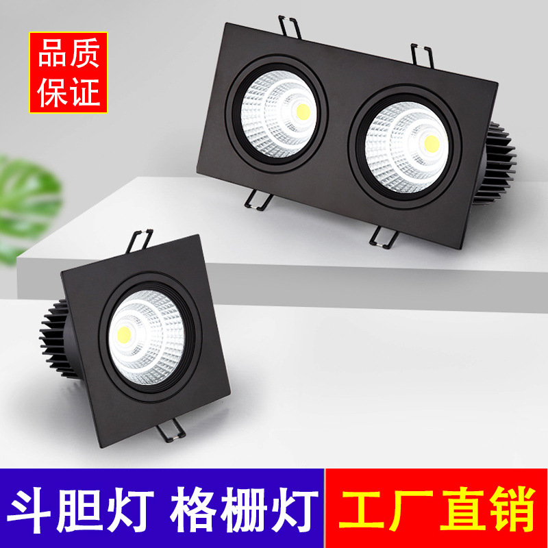 スポットライト店舗商用方通灯ledアルミ方通天井角型cob斗胆灯二頭筒灯グリル