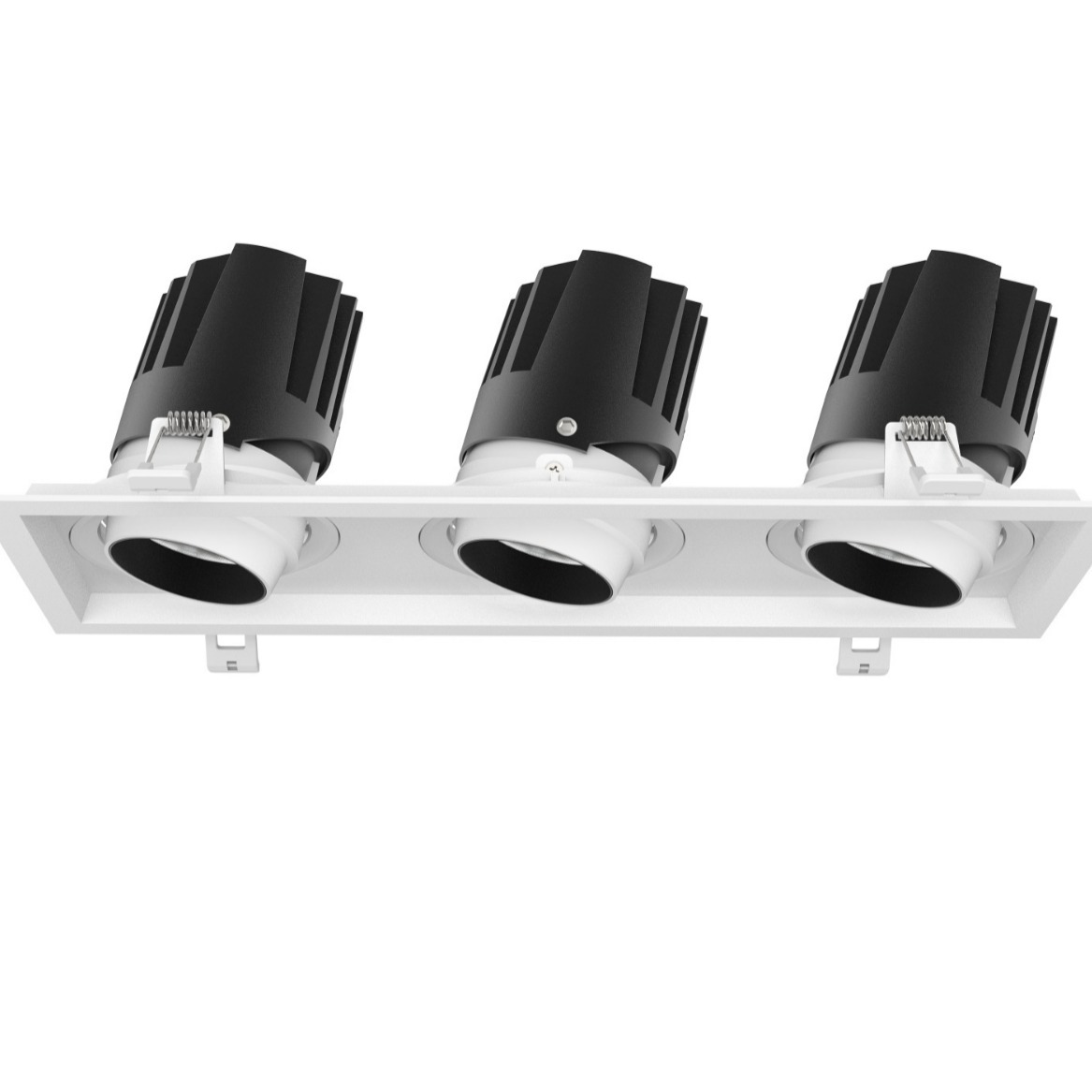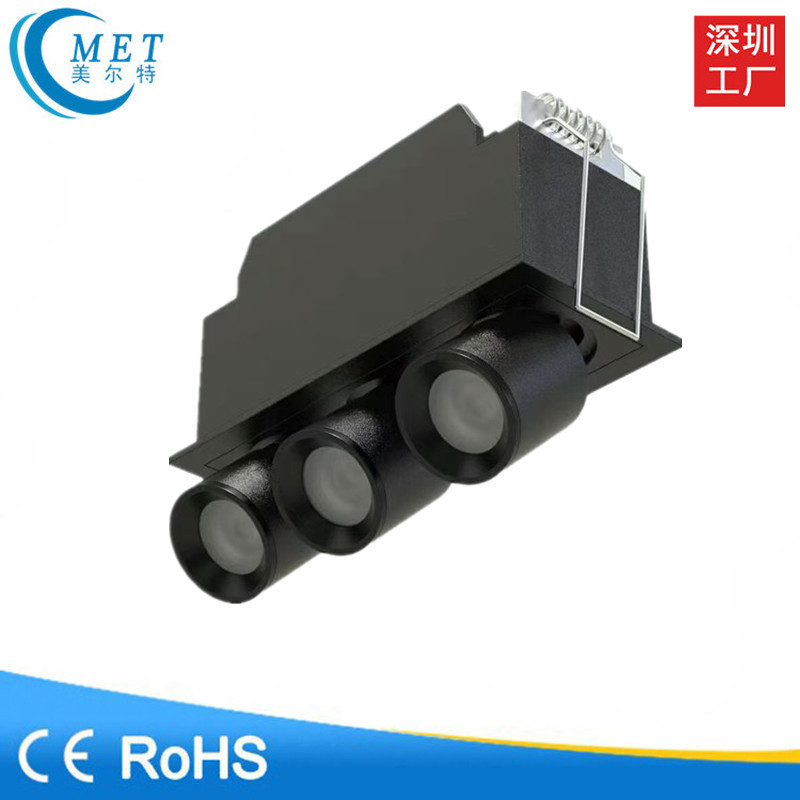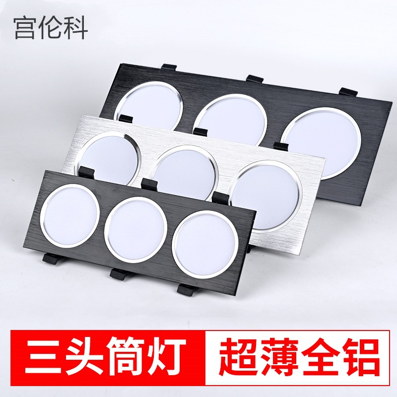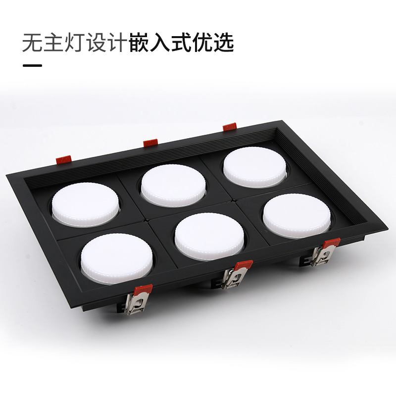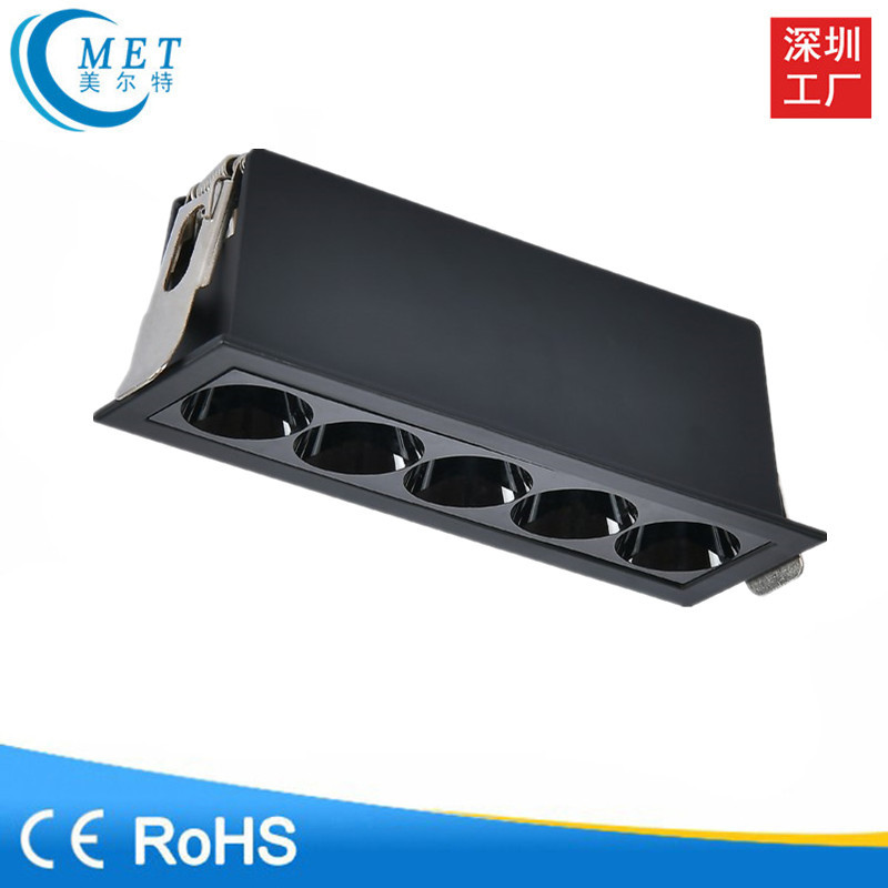 ヘッドメッシュ長方形ダウンライト天井30三頭10穴開け埋め込み型グリルライト連体黒色3斗胆灯