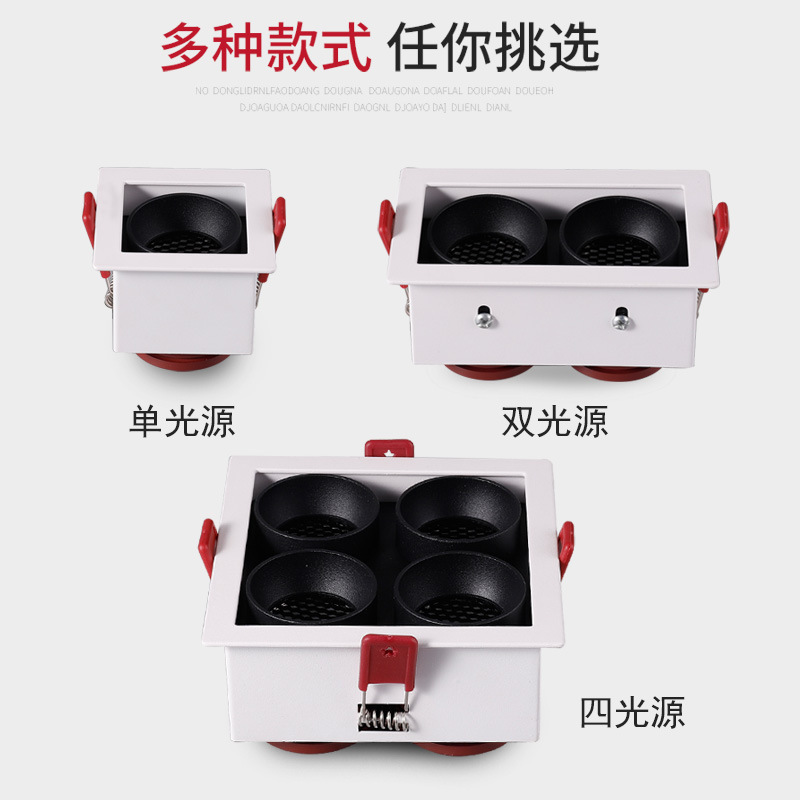 组み込みシングルヘッドcobスポットライトトットランプ長方形ランプledグリル天井天井天井ダブルヘッド超亮斗胆灯