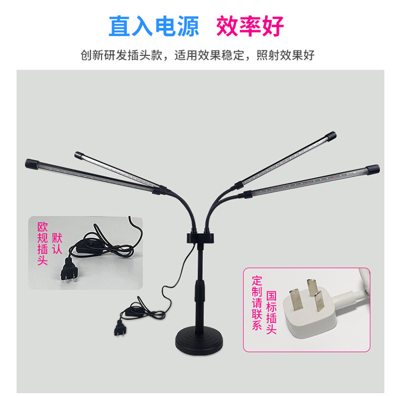 クロスボーダー専用led全スペクトル高圧室内デスクトップ花卉移動4管植物成長灯クリップ金