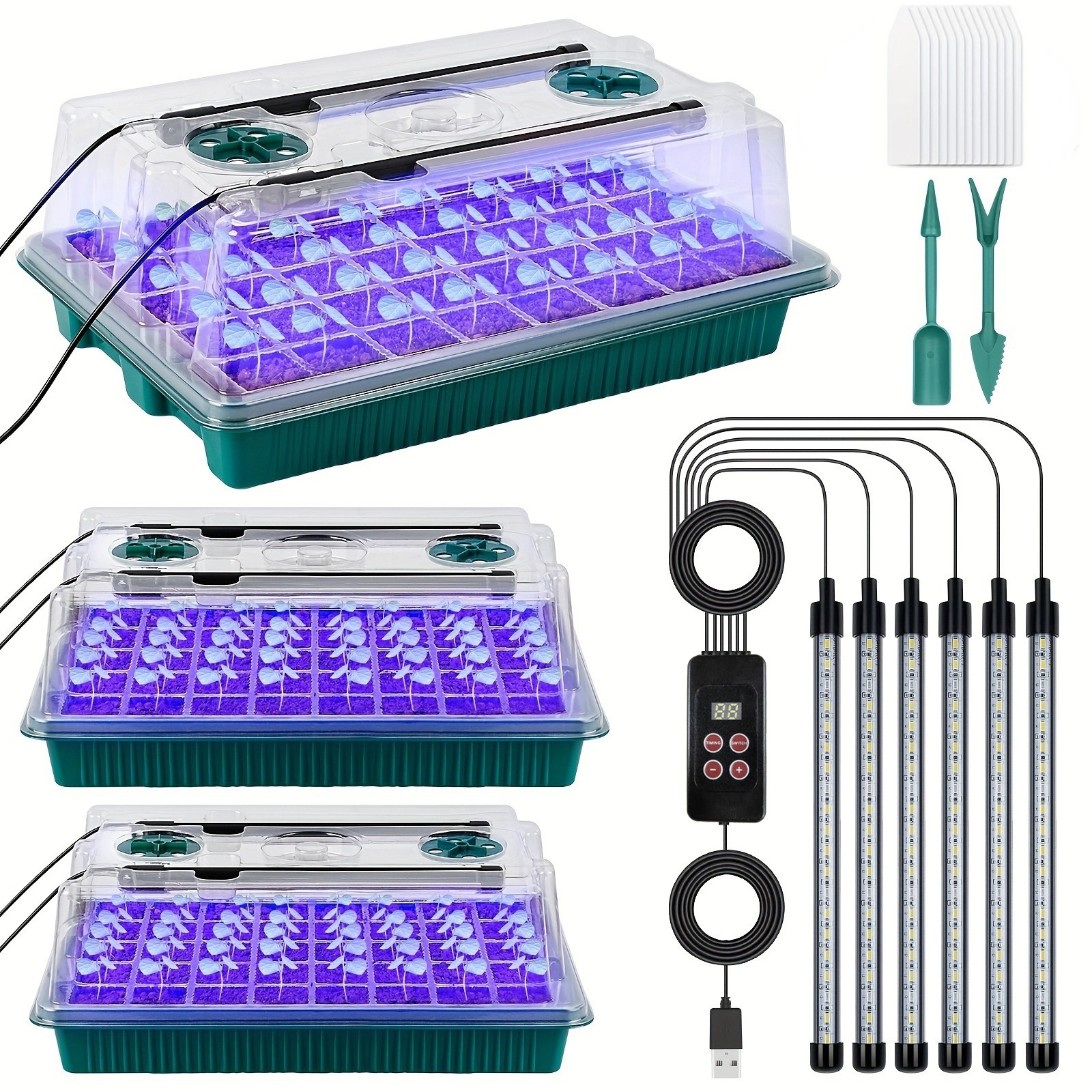 Amazonの新しい厚みのあるブリスター、ライト付き苗ポット苗箱、小さな植物通気性バルブライト付き3点セット