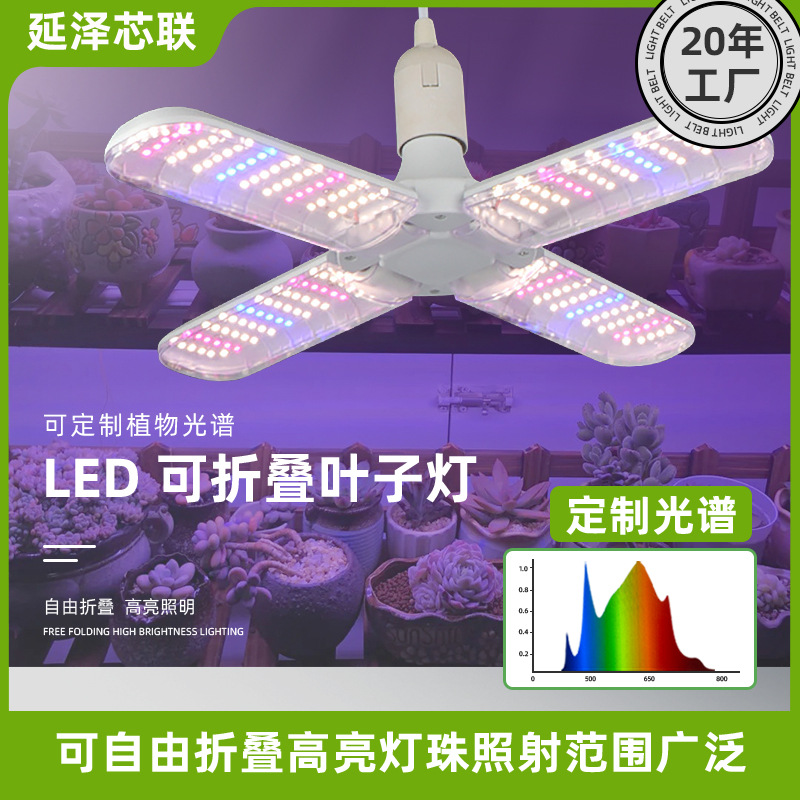四葉折り畳み可能植物灯成長灯全スペクトルクロスボーダーE27室内多肉花卉LED葉補光灯