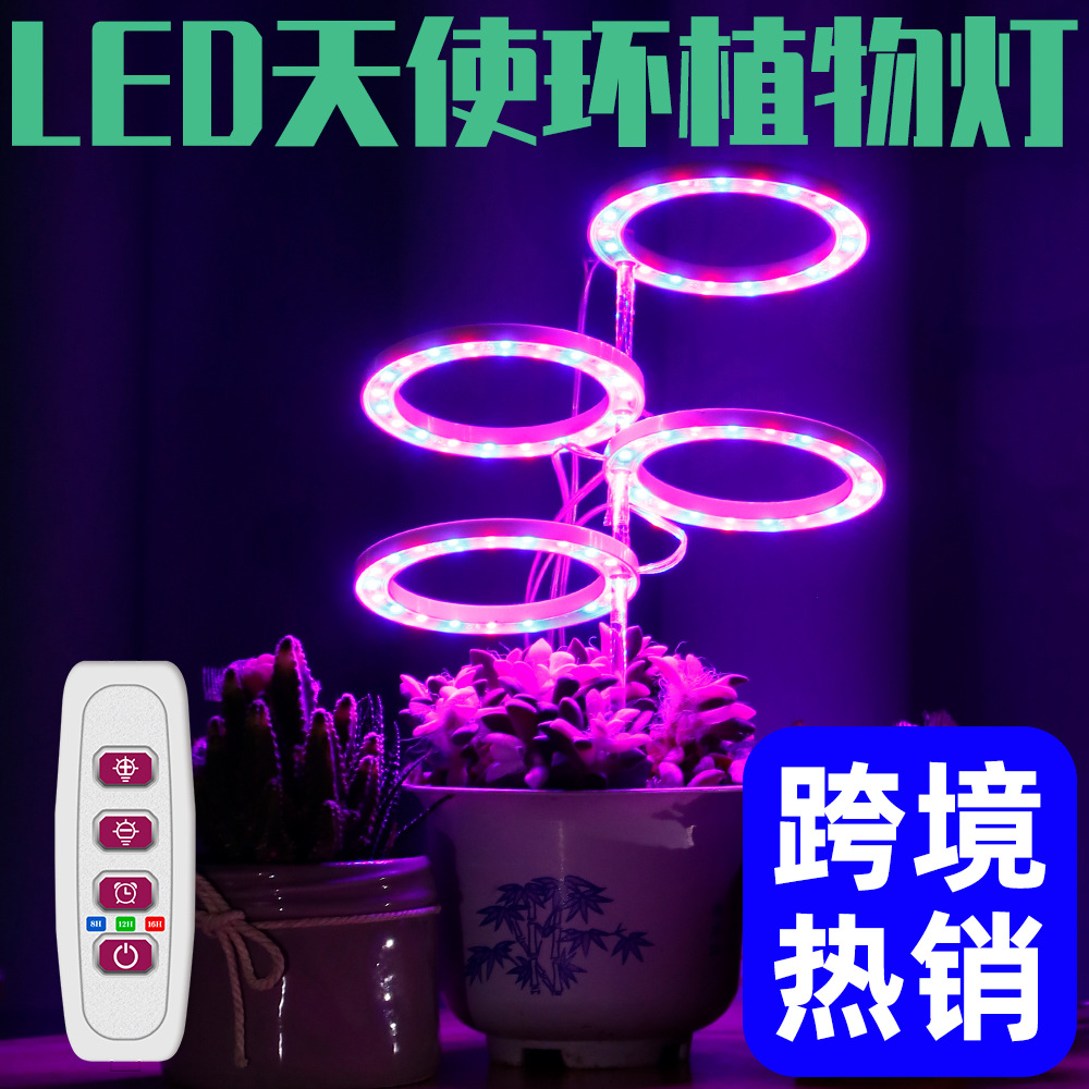 越境新品室内全スペクトル多肉植物補光灯led天使環植物成長灯知能定時