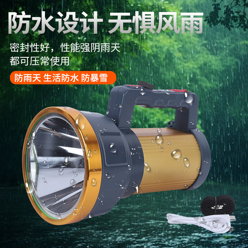 クロスボーダー新型強光ハンディライト屋外キャンプライト登山釣りサーチライト防水パトロール充電ハンディライト