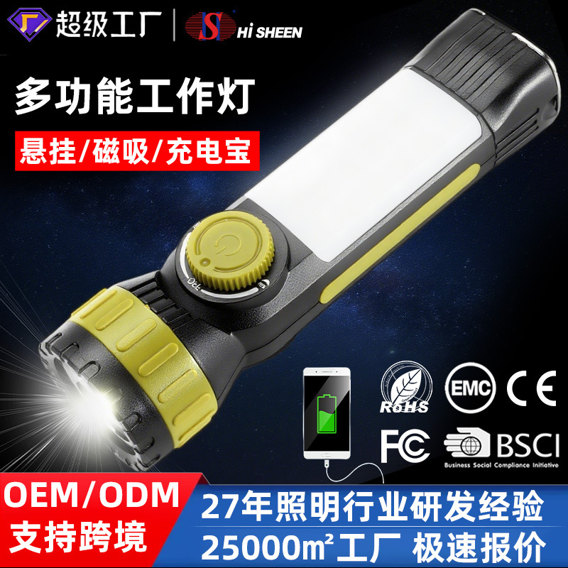 メーカー卸売強力な光と長持ちする懐中電灯屋外充電式サーチライトタイプ C は電源バンクとして使用でき、超高輝度ライトとして使用できます