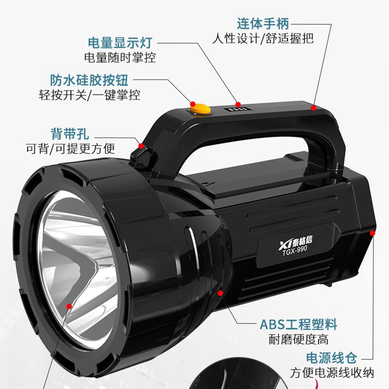 泰格信990LED携帯式サーチライト充電可能な強い光超明るい屋外家庭用パトロール夜行緊急ライト
