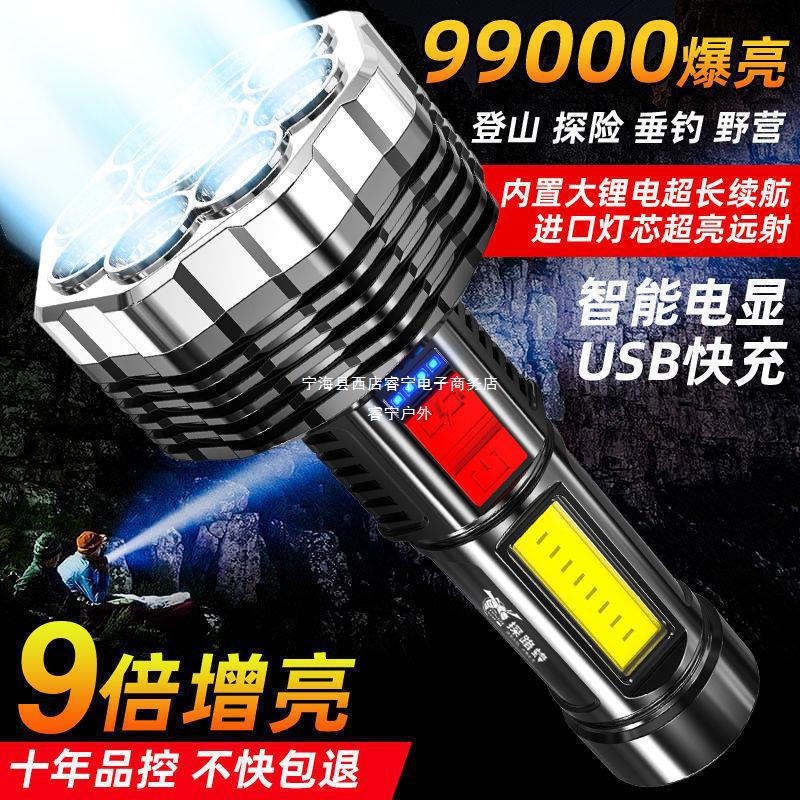 新型九核led超亮屋外灯usb充電家庭用キャンプサーチライト携帯遠射強光懐中電灯