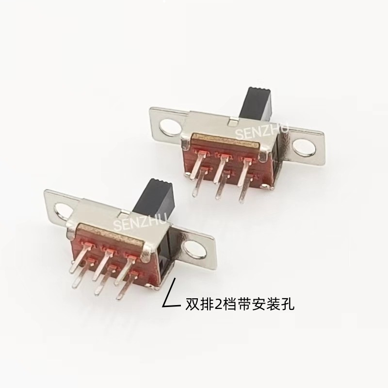 トグルスイッチSS-22E02 6脚2P2Tダブル2段縦型耳付取付穴付きスライドスイッチ