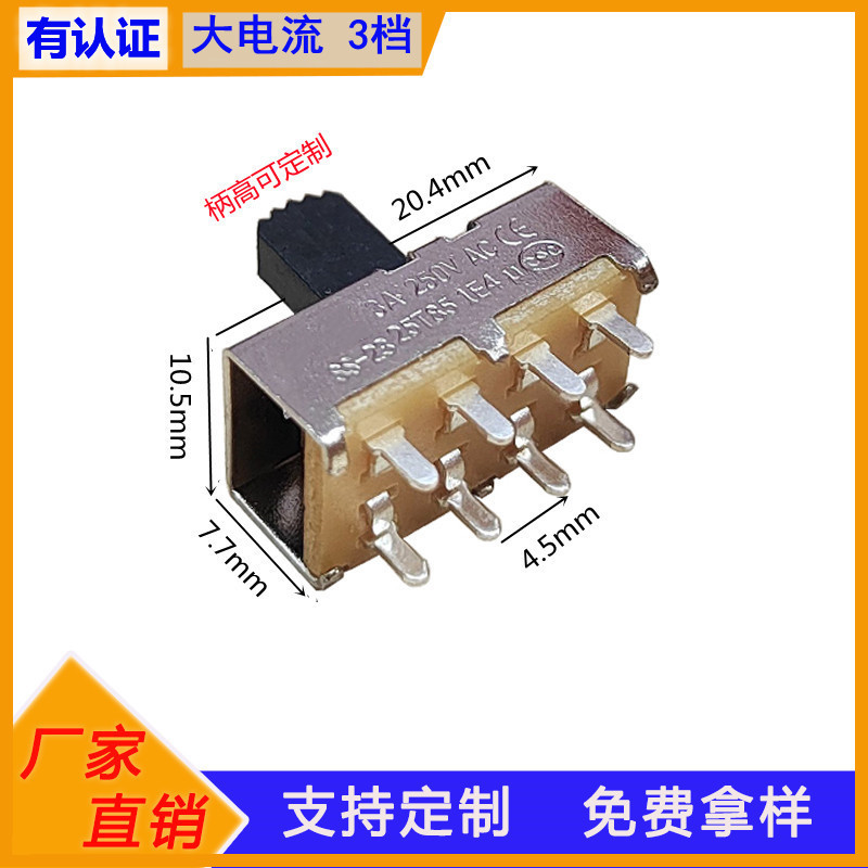 Ss23h25穴ピン6a大電流トグルスイッチ2p 3t二列三段立式直挿しスライドスイッチ