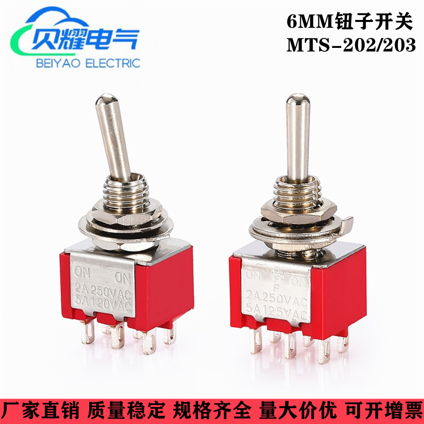 6mm小型ボタンスイッチシリーズMTS-102/103/202ロッカースイッチ3脚2段3段ロッカースイッチ