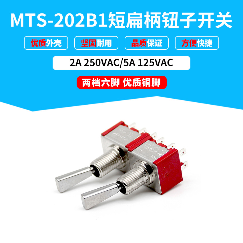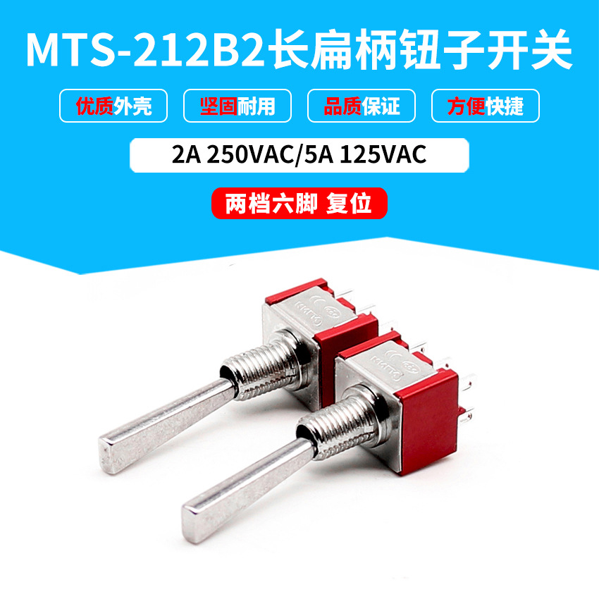 赤色MTS-212B2長平柄ボタンスイッチ2速6足リセット6MM
