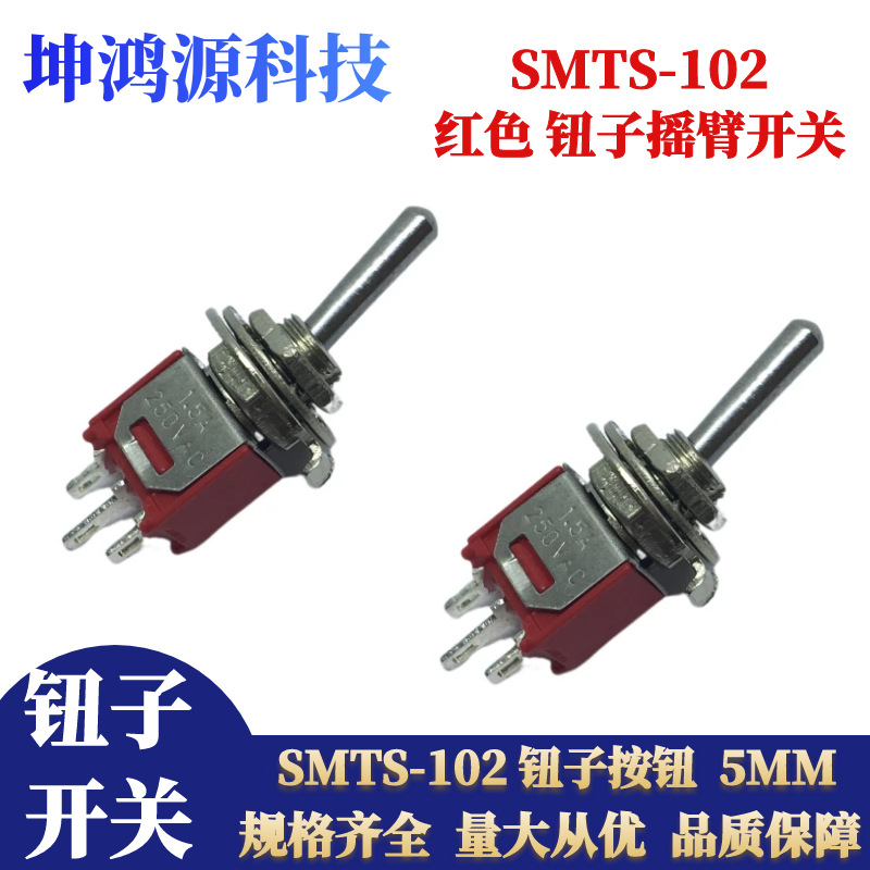 5MMボタンスイッチSMTS-102ミニ小型ロッカースイッチ赤3脚2段首振りスイッチ