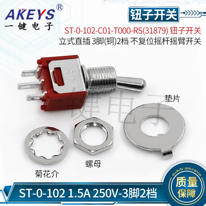 ST-0-102-C01-T000-RS小型ボタンスイッチ縦型インライン3脚2段ロッカースイッチショートハンドル