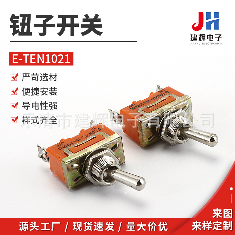 E-TEN1021钮子开关 橙色波动摇臂开关 二脚二档电源启动纽子开关