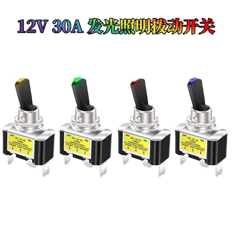 12V 30A発光照明トグルスイッチ自動車船舶照明ボタンスイッチ12MMロッカースイッチ