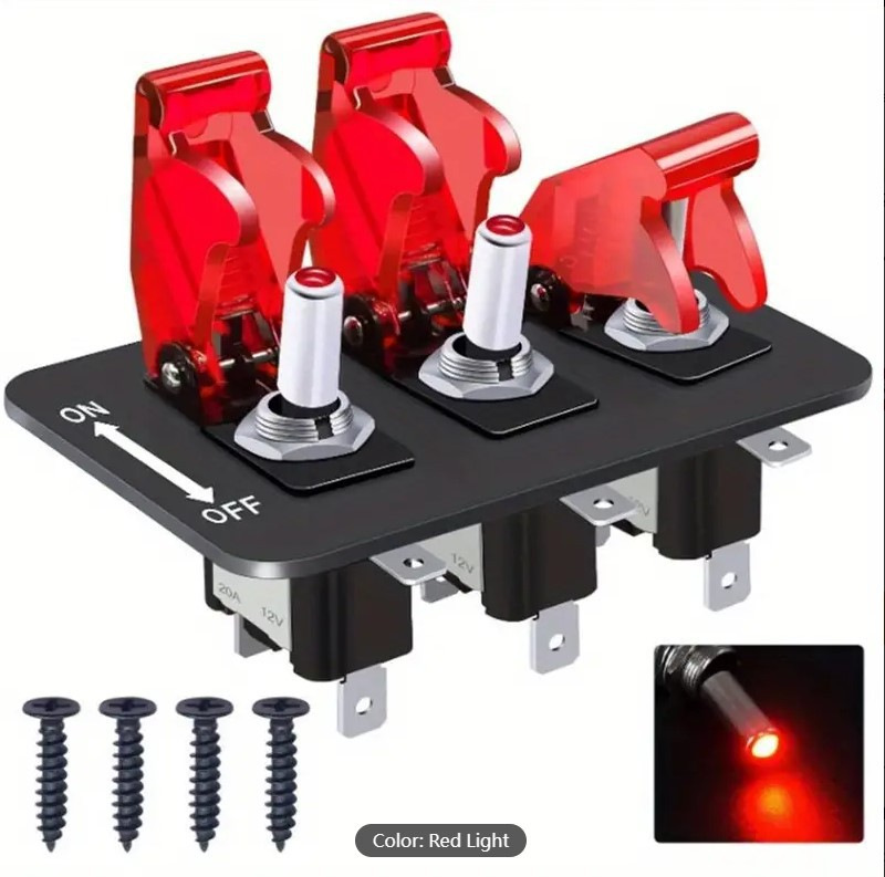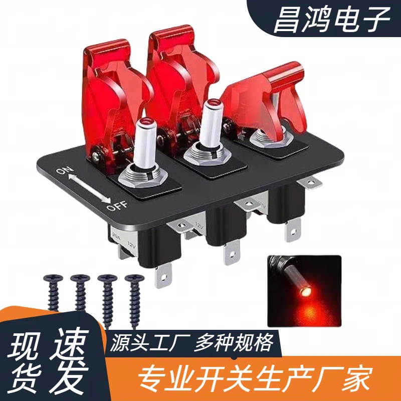 ASW-07D 3 ポジショントグルスイッチ 12V パネル、ロッカースイッチ LED ライトとフリップカバー付き高耐久オン/オフ