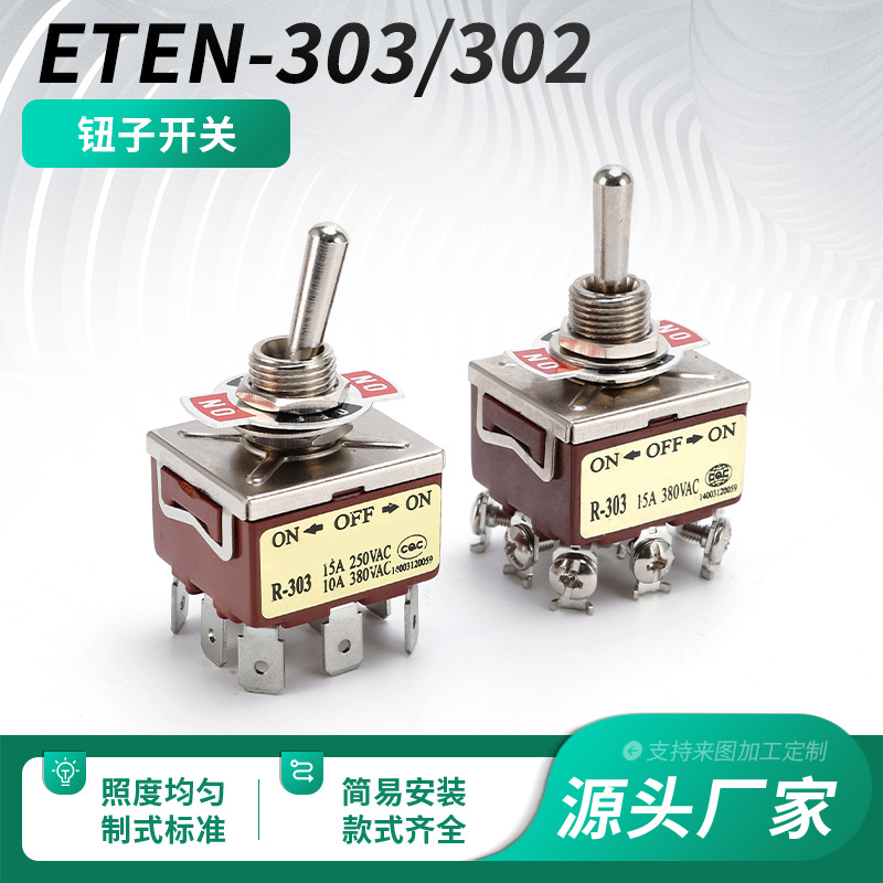 ETEN-303/320 ロッカースイッチ トグルスイッチ 9ピン 2速メタルセルフロックスイッチ