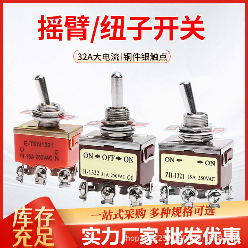 钮子开关E-TEN1021/1122/1221/1322摇臂电源开关2脚3脚4脚6脚12MM