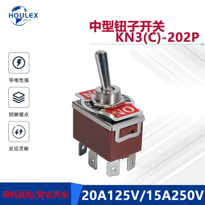 KN3(C)-202P 赤特殊ベースメタル丸ハンドルロゴ銘板付き中型トグルスイッチ