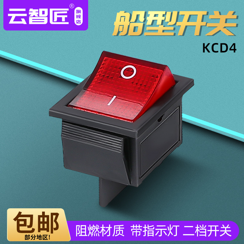 KCD4船型シフトスイッチ船型ハイパワー電源ボタン二段二脚赤31*25mm 250V