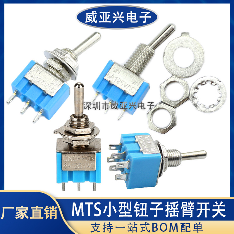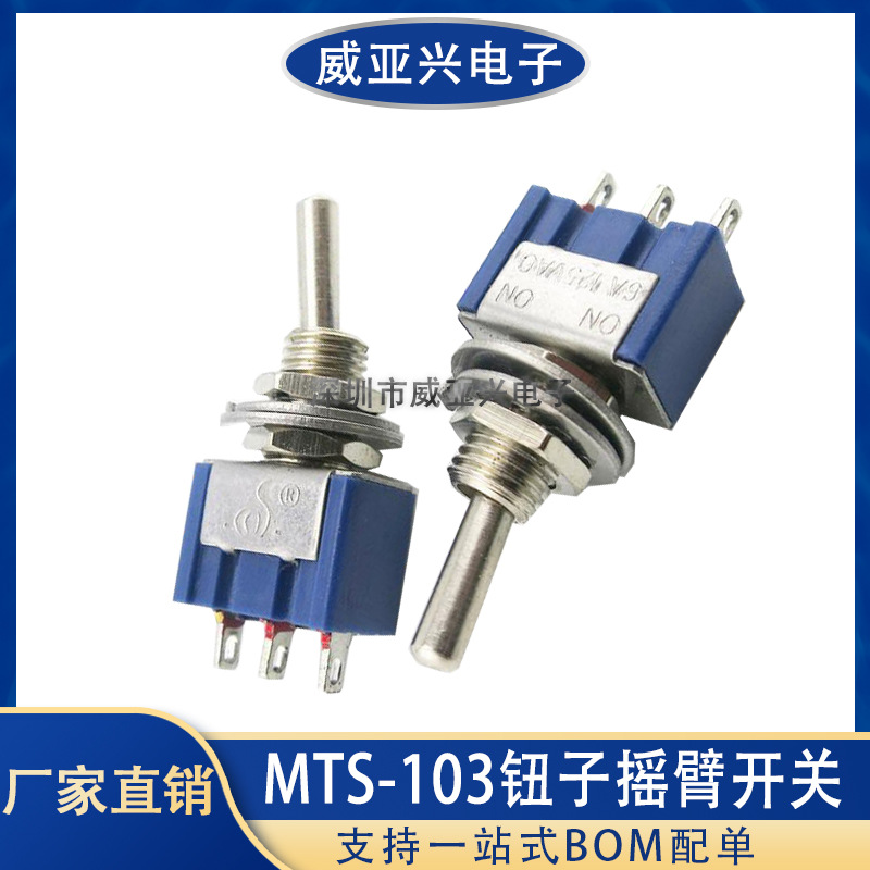 钮子开关MTS-102/203/403摇臂开关三档两脚两档三脚带灯不带灯