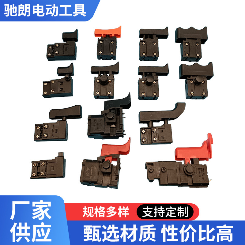 スチールマシンスイッチ、片側配線スイッチ、電気ドリルスイッチ、電動工具アクセサリー、さまざまなスタイルと選択可能な素材