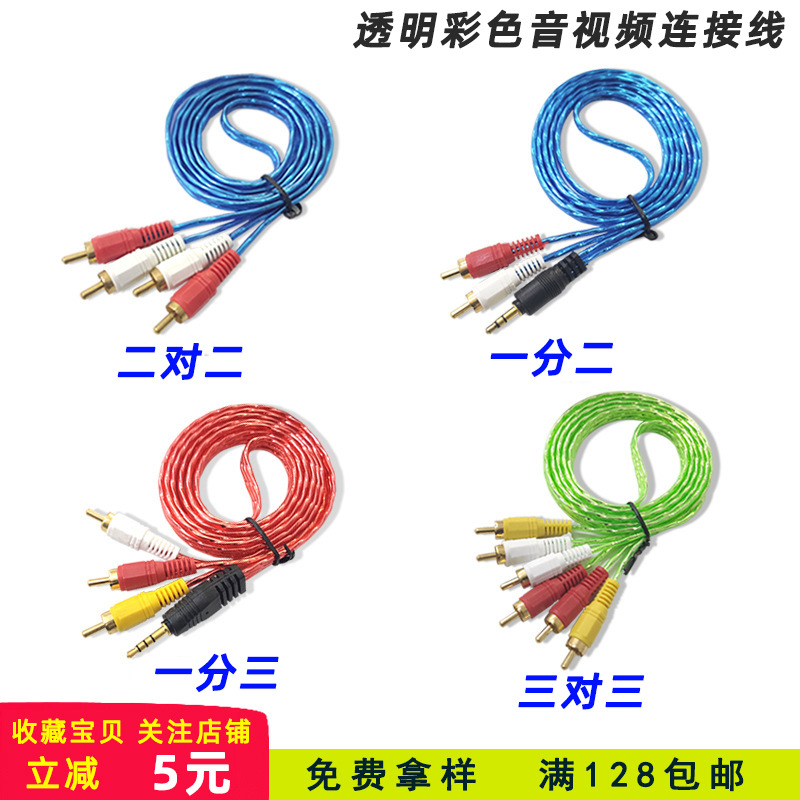 透明カラー一分二avオーディオケーブル一分三オーディオdvdケーブル三対三セットトップボックスビデオケーブル音声