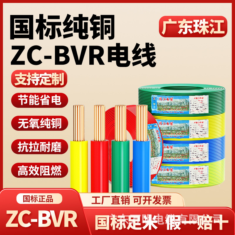 広東珠江BVR電線国標家装家庭用難燃銅芯1.5 4平方多本コードケーブル