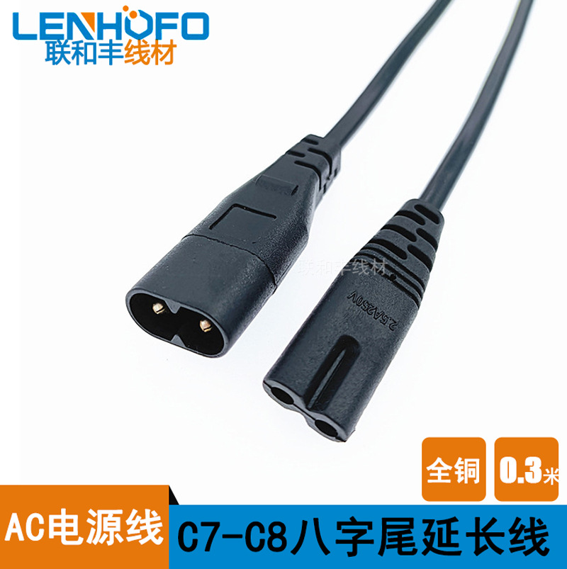 C 7 c 8延長線8字尾公転母電源コードのオスとメスの突合せ八字尾延長線0.3メートル