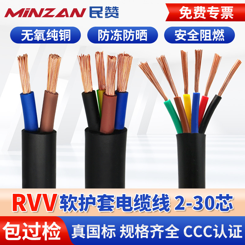 Ccc国標電源コードrvv2芯4芯電線ケーブル2.5平方1.5平方銅ケーブル多本シース