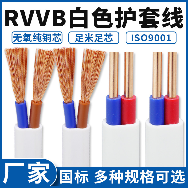 卸売国家標準 RVVB 2 芯被覆線 0.5 0.75 1 角銅コア平行線電源コード家庭用電線