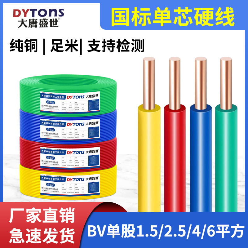 BV単芯銅電線1.5/2.5/4/6平方家装布電線単股硬線無酸素銅芯絶縁線