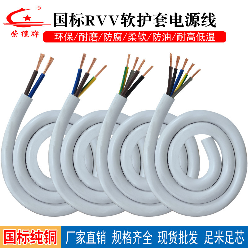 国标RVV护套线电线电缆0.5/0.75/1.0/1.5/2.5平方电源线控制线