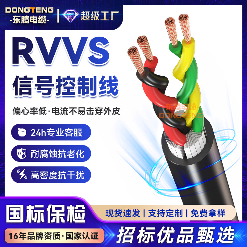 東騰RVVS双撚り絶縁電線2芯4芯通信機器電源線国家規格無酸素銅芯消防専用線