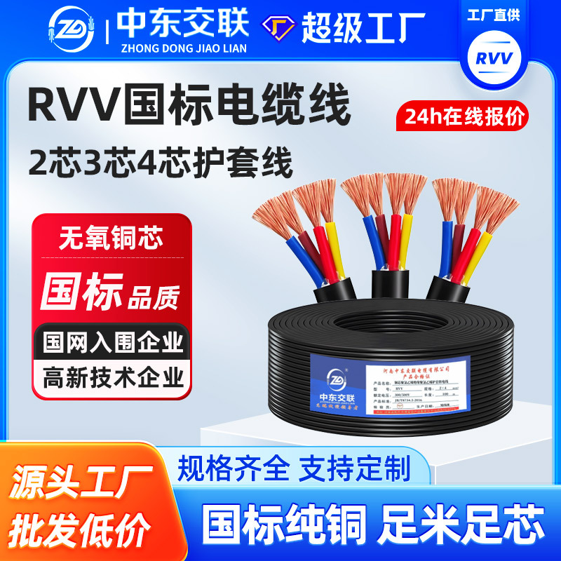電線ケーブルメーカーrvvt 1.5/2.5/4/6平方牛筋線国標防水耐摩耗ソフトケーブル