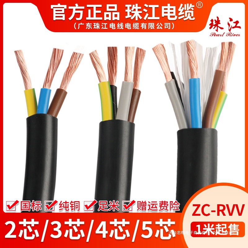 広東珠江ケーブル国標難燃純銅芯ZC-BVR1.5/2.5/4/6多くの家具用軟電線