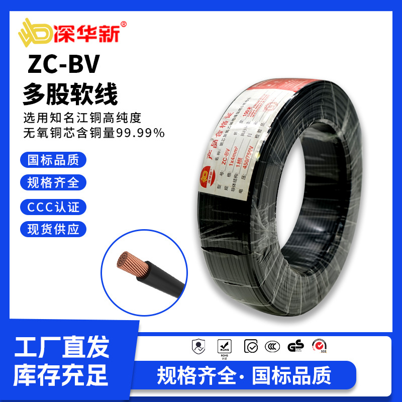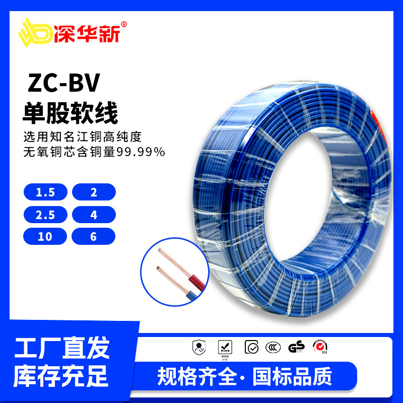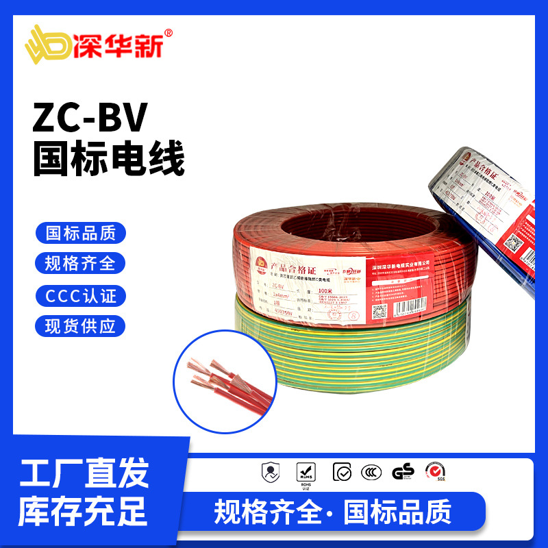 深華新国標ZC-BV電線1.5 2.5 6平方単芯純銅芯抵抗単枝難燃家服線