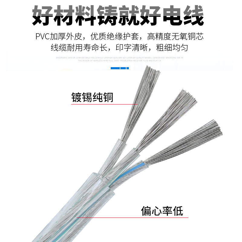 ll镀锡纯铜透明电线水晶灯线电源家用软线2芯3芯0.50.751平垒德株