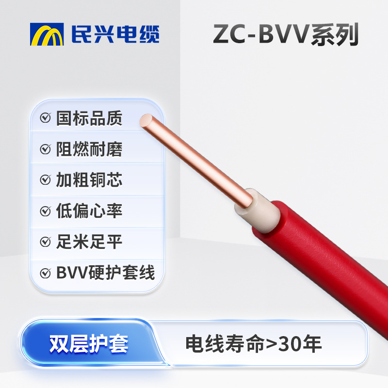 民興ケーブルBVV電線ケーブル1.5/2.5/4/6平方銅芯単股銅線国標照明
