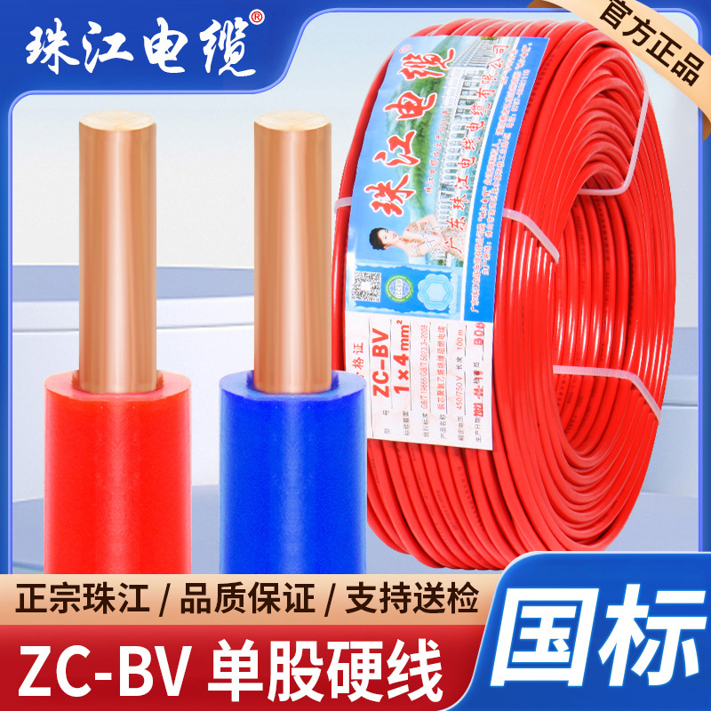 国標珠江ケーブル家庭用BV電線1.5 2.5 4 6平方単芯純銅難燃家具硬線