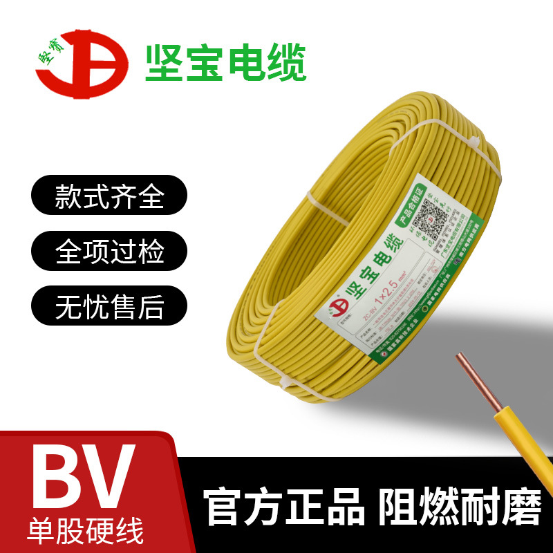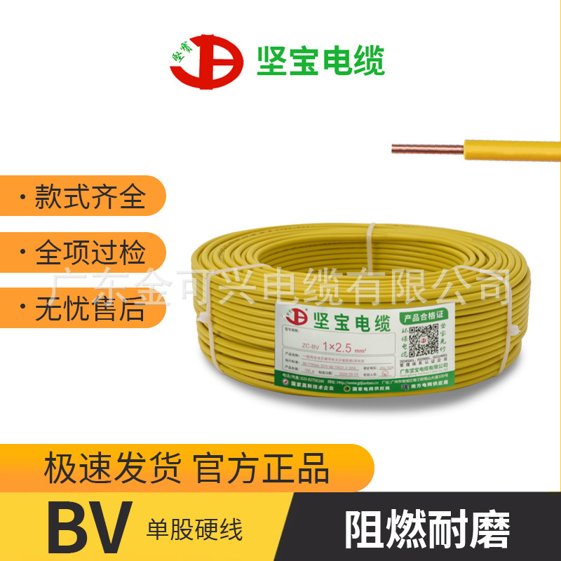 広東堅宝ケーブル花城ZC-BV硬線1.5/2.5/4/6平方単株難燃銅芯電線家装