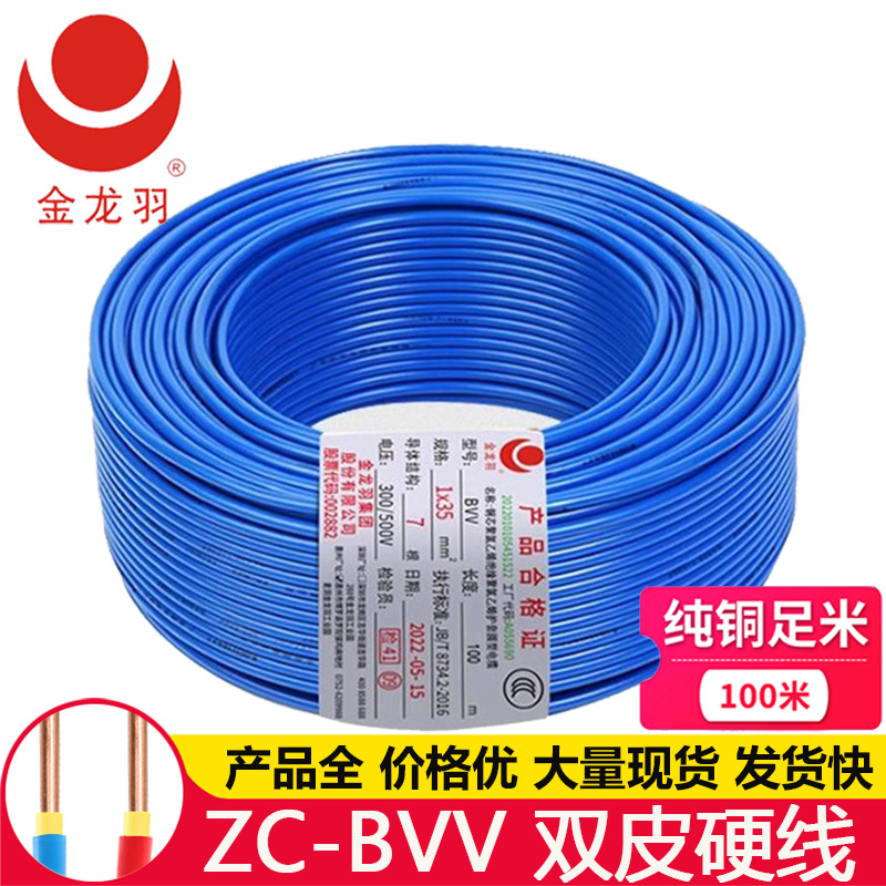 金龍羽ZC-BVV 1.52.5 6平方国標難燃ダブルプラスチック単股銅芯電線家庭用